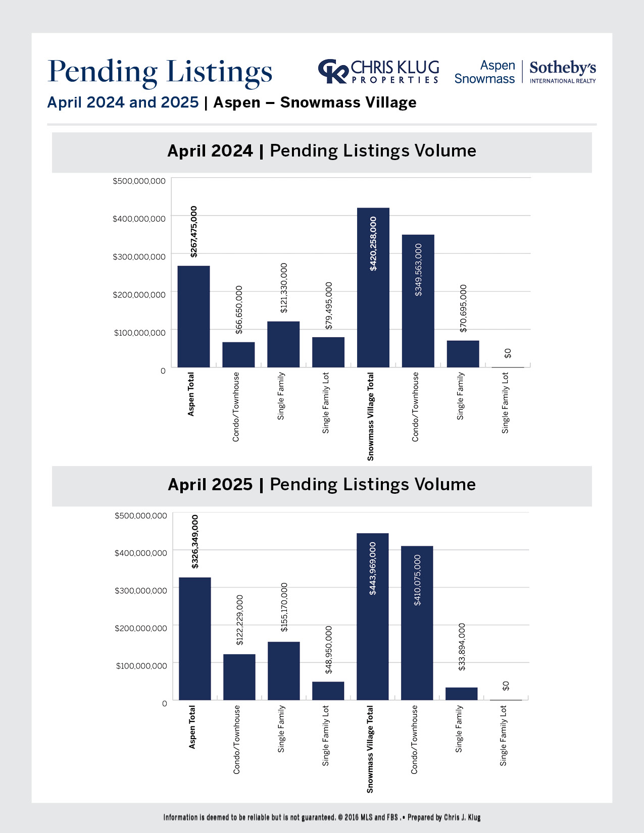 4) Across Aspen to Old Snowmass, there are 154 pending whole ownership, free-market properties totaling $844.4M—up from 133 pending sales and $746.6M last year. That’s a 15.7% increase in transactions and a 13% rise in volume.