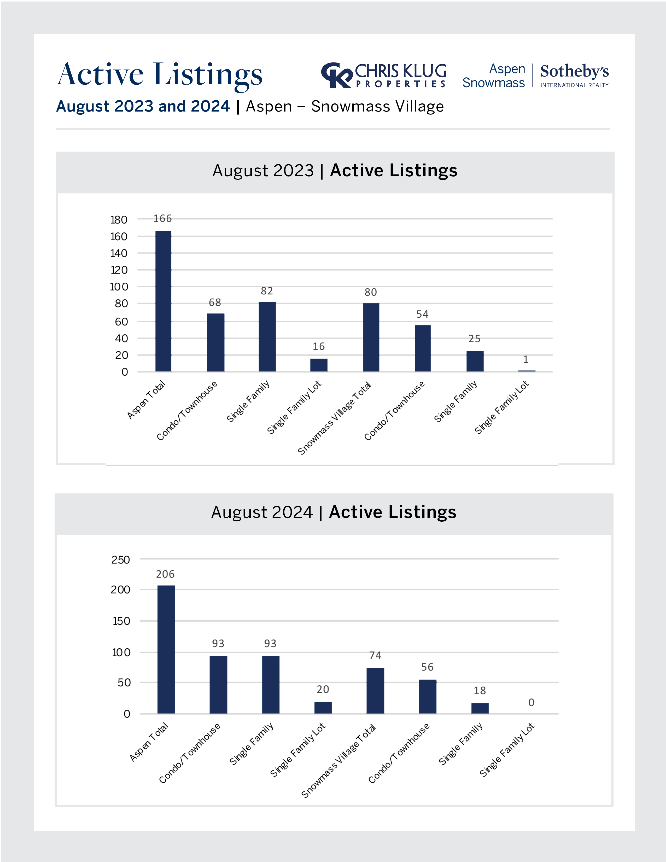 - The inventory of all whole ownership, free market properties in Aspen has increased by 24% year over year.