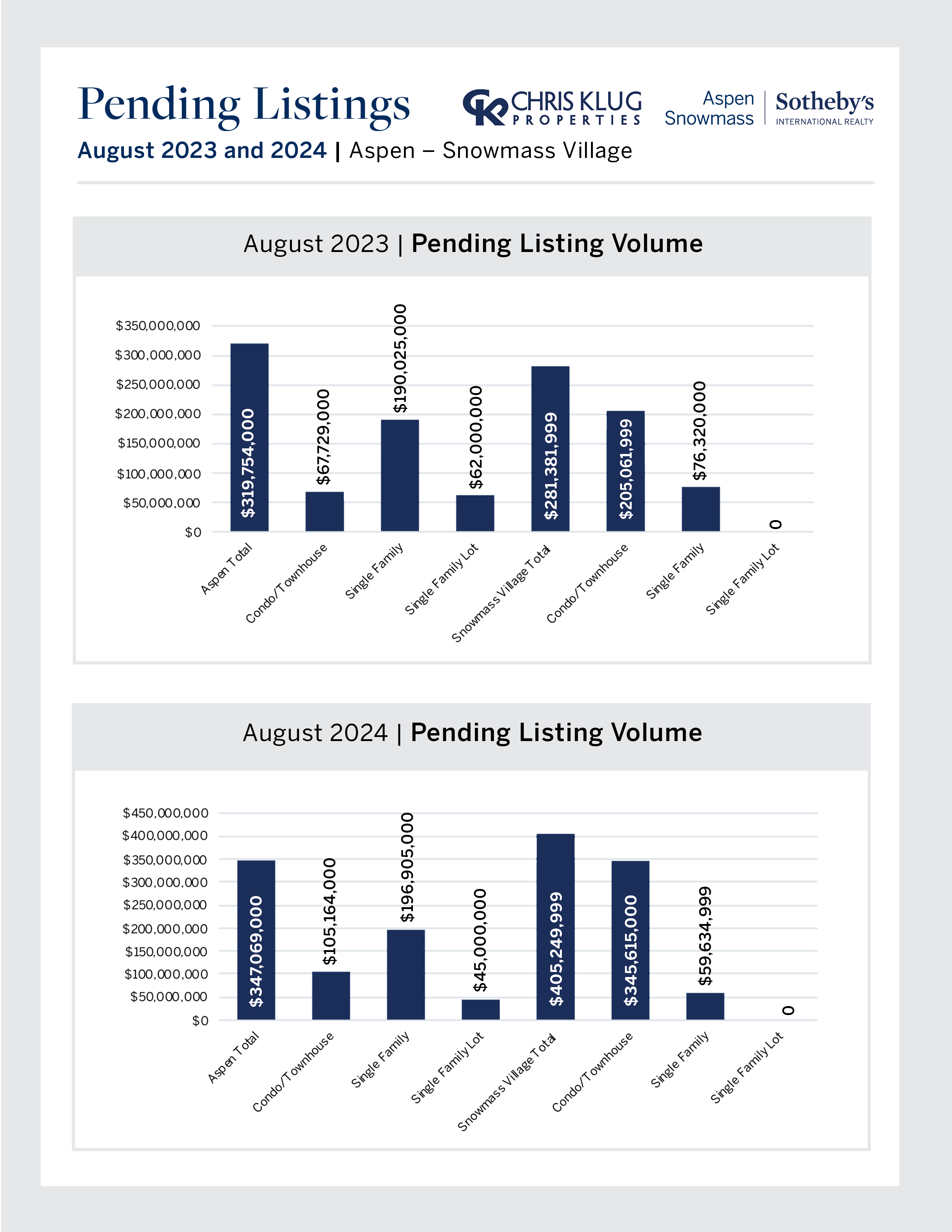 - The sales of properties valued at $10 million+ and $20 million+ in Aspen and Snowmass are slightly below the pace of last year.