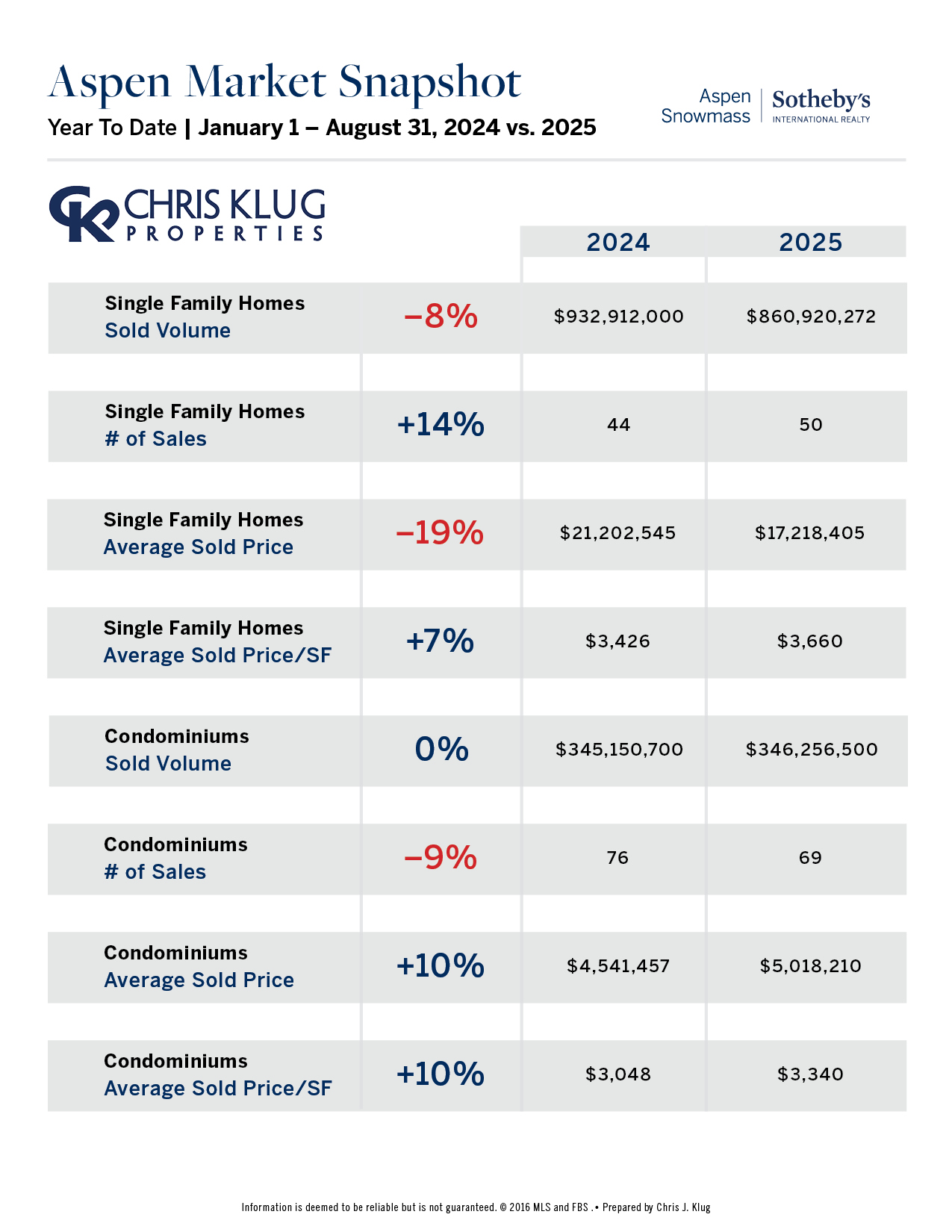 YTD, Aspen single-family $/SF remains near record highs, reflecting continued strength in trophy properties despite thinner overall activity at the very top.