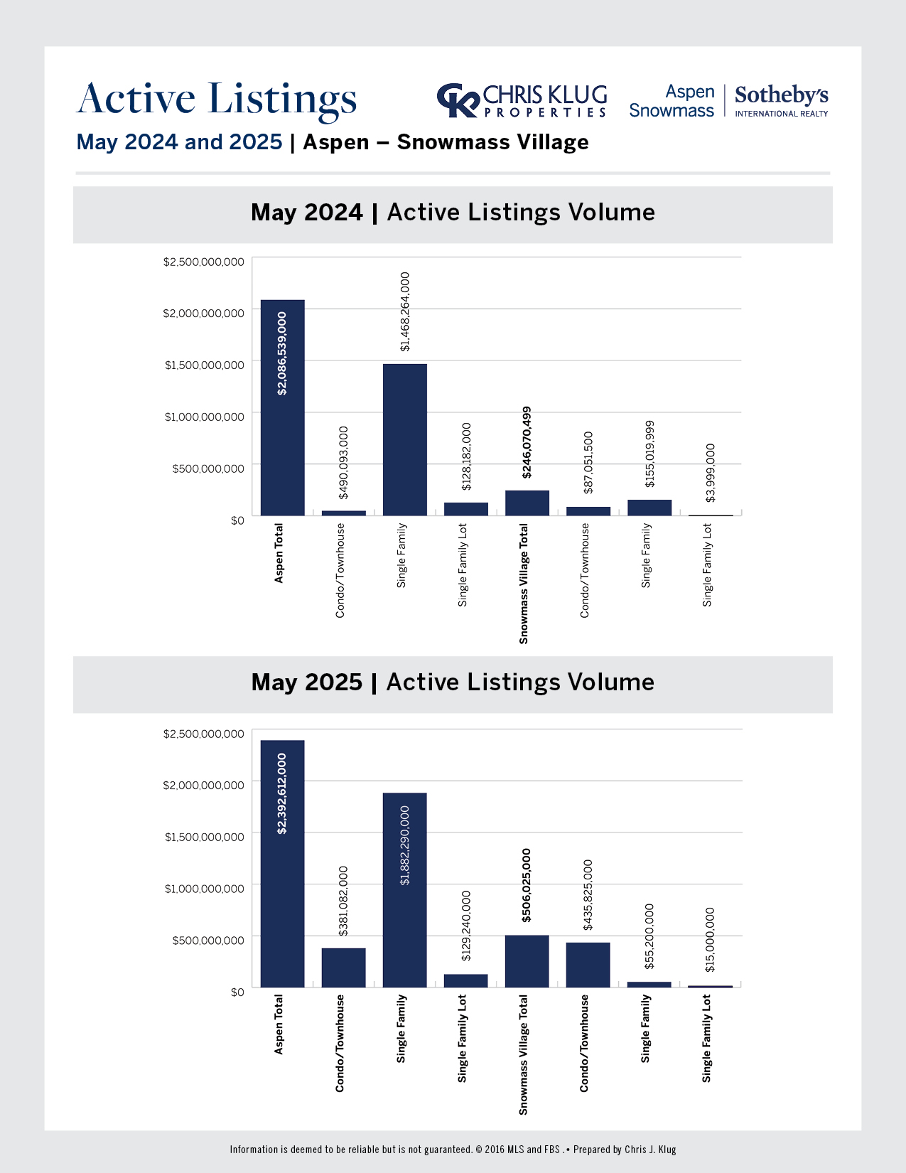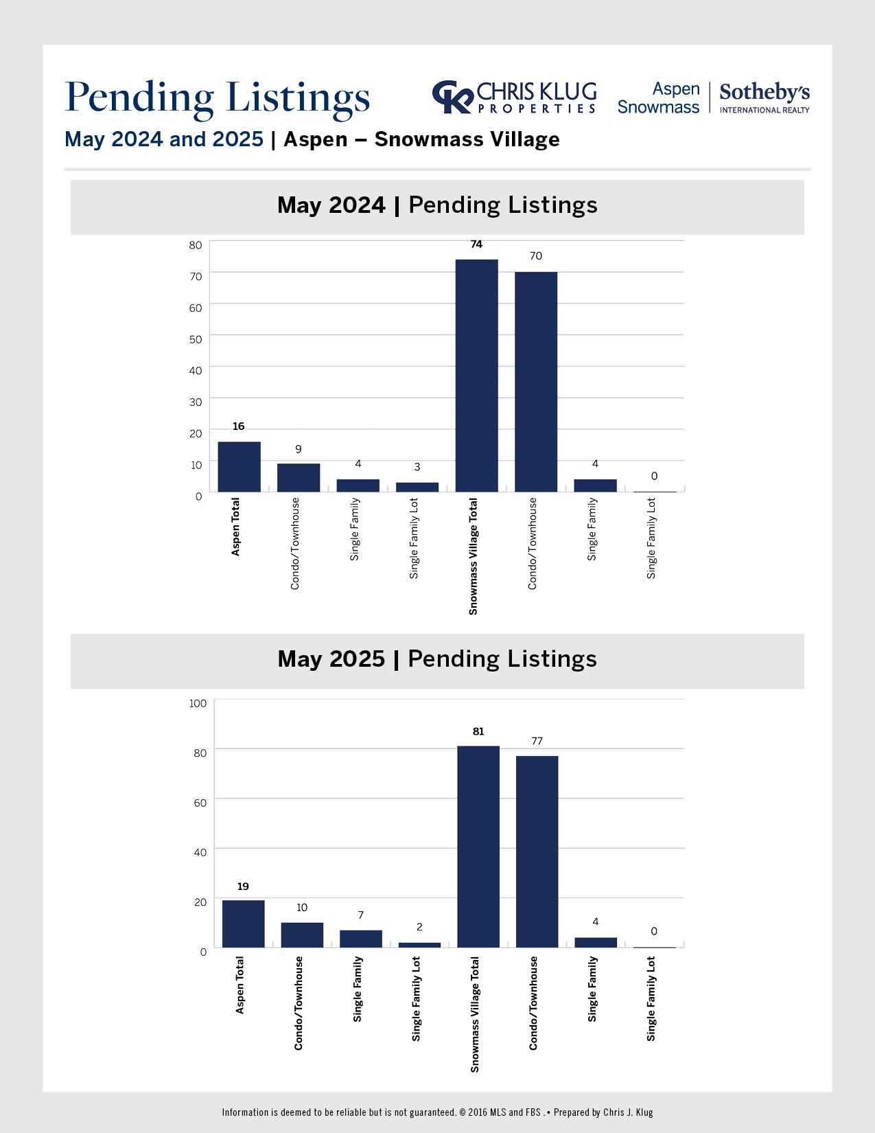 Snowmass Village's inventory stands at 89 units today compared to 50 last year, but there are 7 single-family listings compared to 14 last May 31.